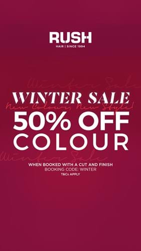 Step into the season with a fresh new colour at RUSH. Enjoy 50% off colour services when you book alongside a Cut & Finish. Our expert stylists are here to help you find the perfect winter look.
